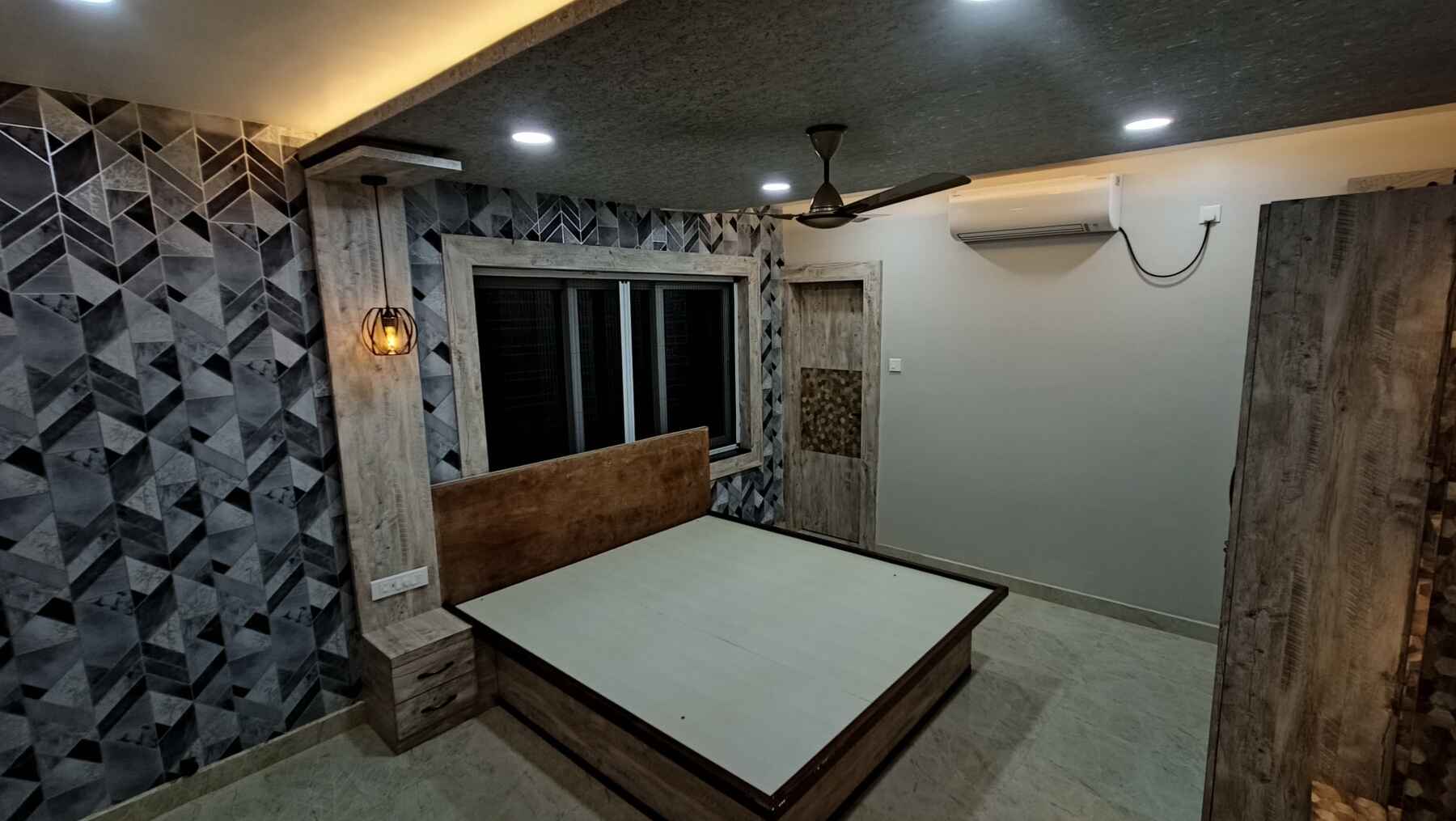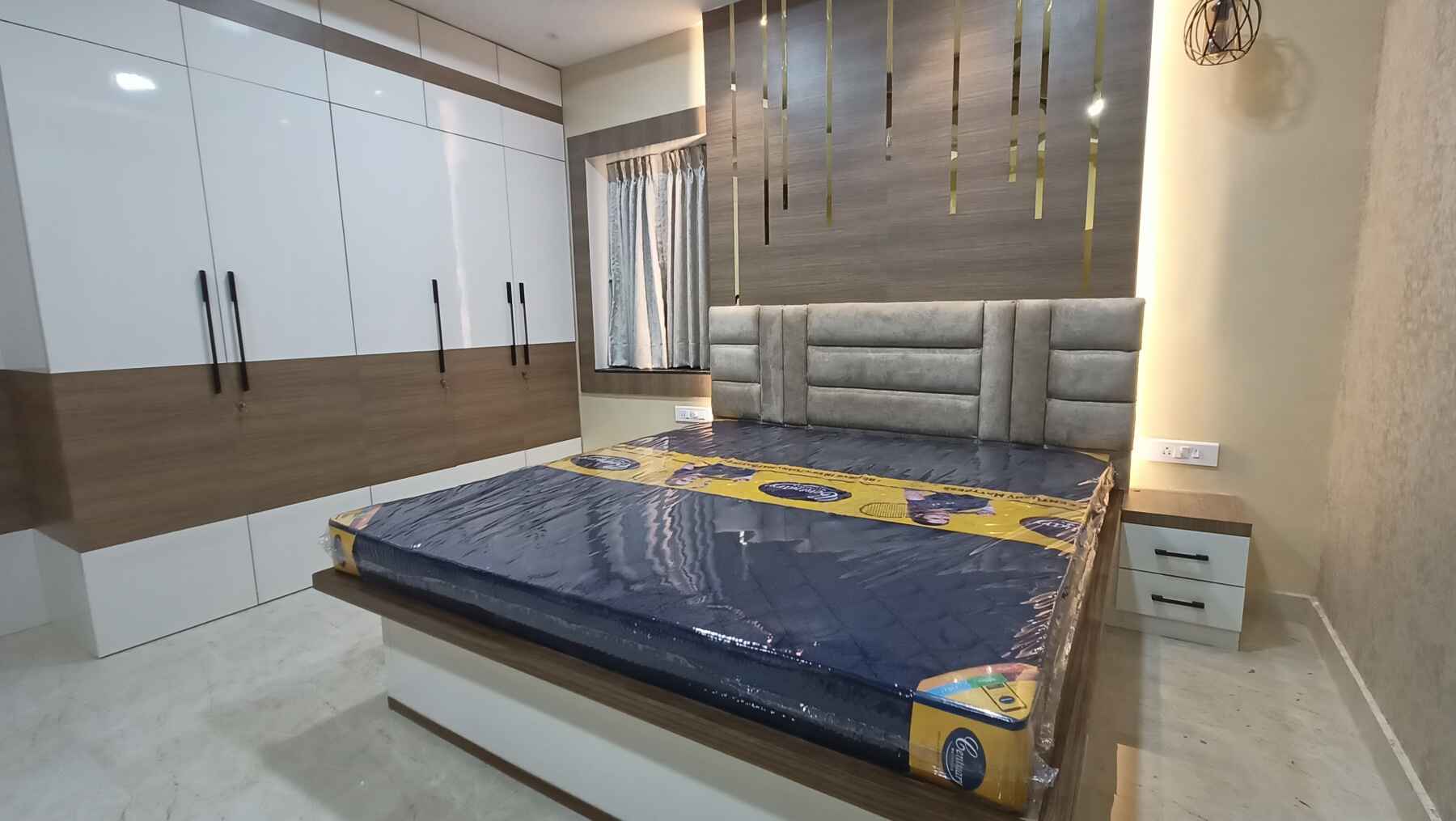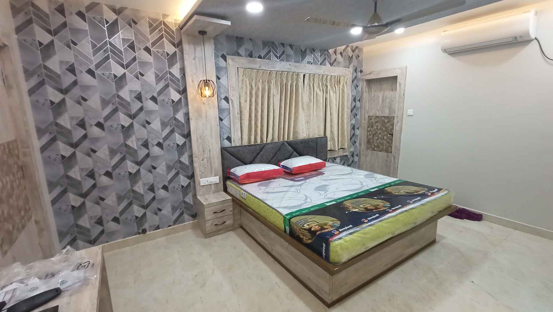 Modern bedroom interior and decor feature natural materials, neutral colour schemes, and little or no too-fine, unnecessary detailing. Emphasis on horizontal and vertical lines with fewer curves, and natural light with unadorned windows is the trend. For bedroom interior design we use natural materials such as unpainted wood, metals, leather and natural fibres; neutral/natural colour palettes, reflective surfaces such as steel, chrome or glass and natural woods and wood veneers.