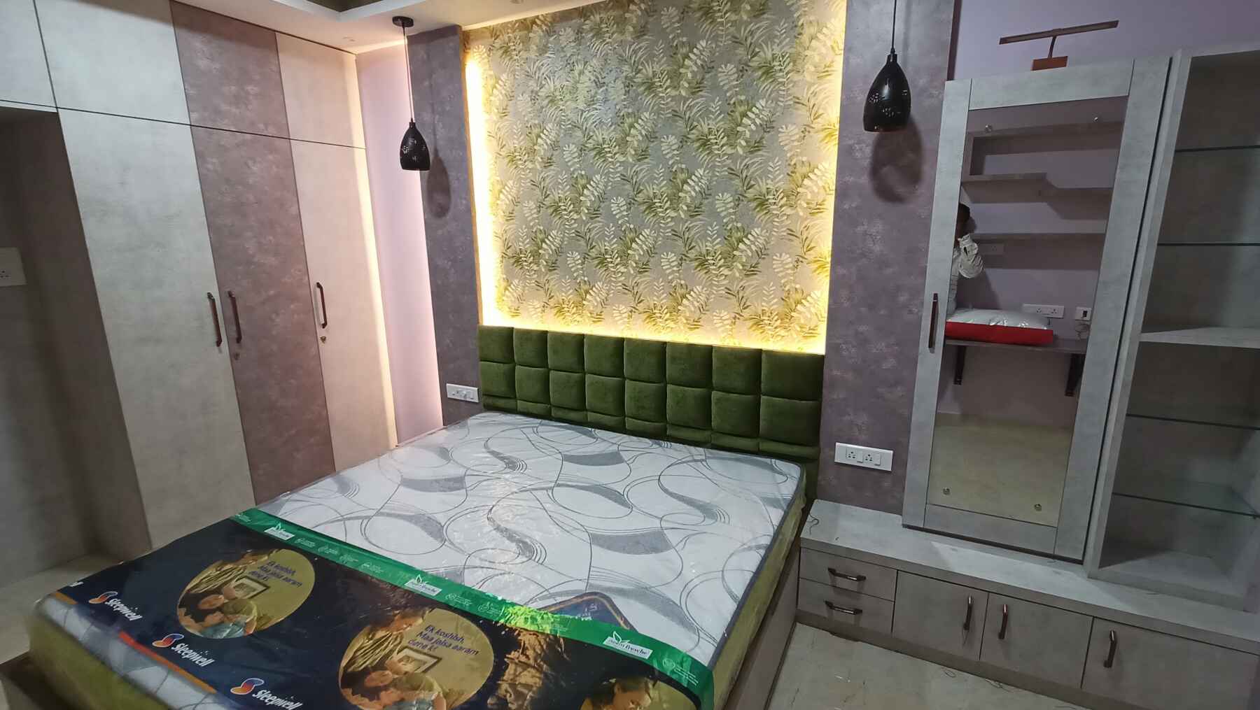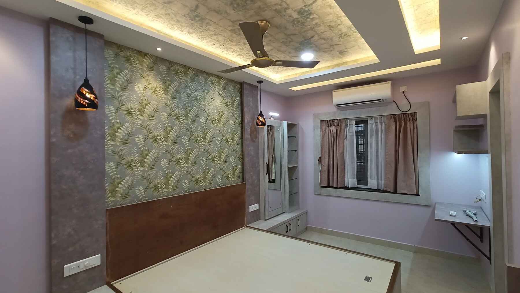 - Select a light shade colour for the wall and you can highlight one wall with wallpaper or any textured paint.